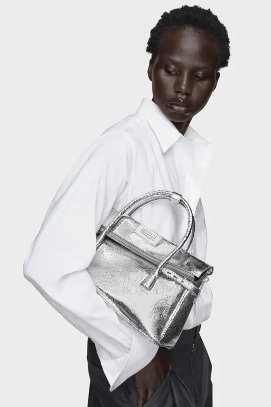 The 5AC East West reimagines Maison Margiela’s most emblematic silhouette through the lens of its Informal Formality mood. Defined by an elongated profile and structured form, the bag echoes the quiet authority of a men’s briefcase. The iconic 5AC line takes its name from the French word ‘sac’ (bag), here reworked in tactile crinkled leather and finished with the Maison’s Anonymity of the lining concept, revealing its inner structure.