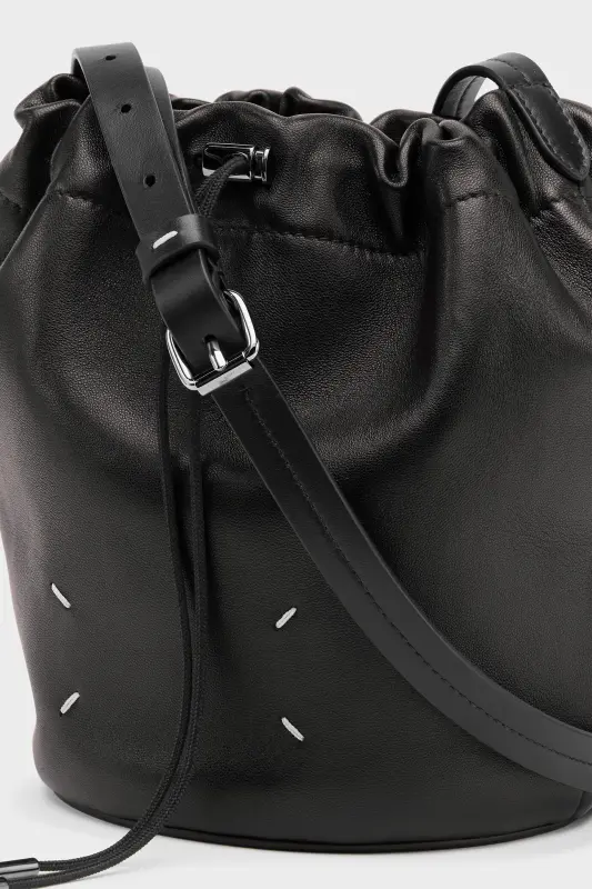 The small drawstring pouch is crafted in soft nappa leather. Carried as a crossbody with an adjustable leather handle. It can be carried crossbody with an adjustable leather strap and closes with a drawstring. The style is finished with the Maison’s signature four stitches.
