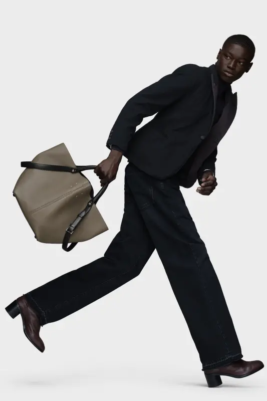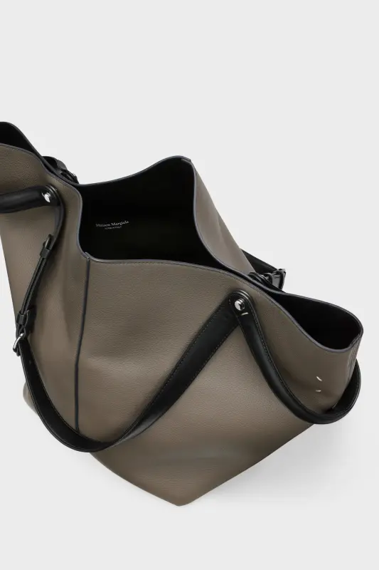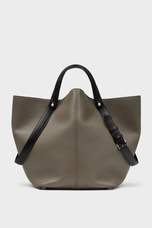 The Maison launches the Dress-age handbag for SS25, crafted from soft pebbled calfskin. With an equestrian spin, the large handbag features classic leatherwork and refined lines, combining unconscious glamour with gestural design. It follows a trapezoid shape with contrast dual-wear strap detail. The studded base allows the bag to stand, and the inner is adorned with the logo. Maison Margiela's signature, the four stitches, appear at the back; the opposite of a label.