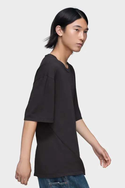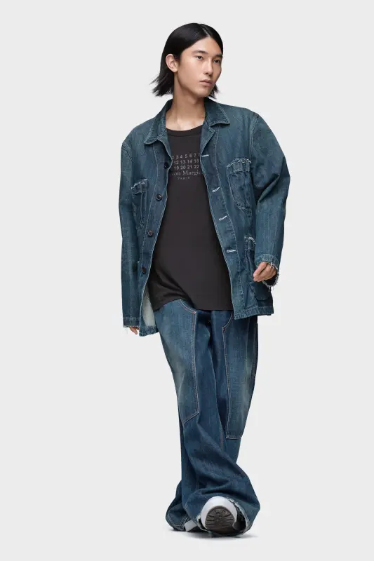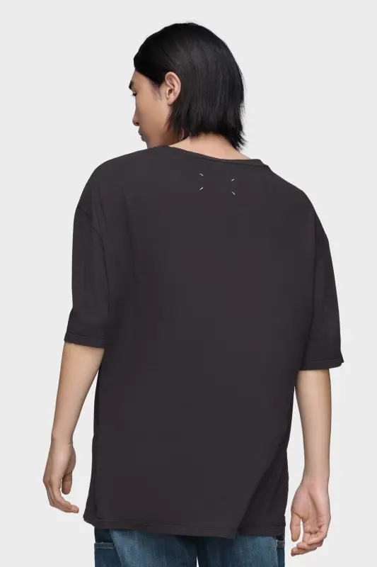 A foundational piece made distinct by subtle interventions. The logo T-shirt is crafted in cotton jersey with a loose fit and wide crew neck, while the Maison's numeric artwork is printed across the chest. At the back, its signature four stitches appear; the opposite of a label.