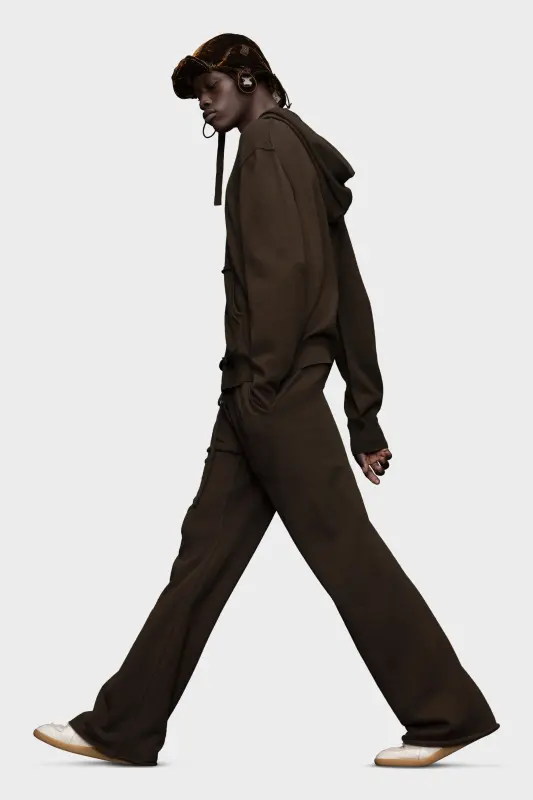 Crafted from a soft cashmere wool bend, the loungewear zip-through hoodie features a Décortiqué front pocket, adding texture and volume to the front of the sweater. It is designed with dropped shoulder seams for a relaxed take, ribbed trims and a drawstring at the neck. Maison Margiela's signature, the four stitches, appear at the back; the opposite of a label.