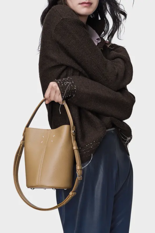 The Dress-age shoulder bag is shaped in supple calf leather with a rounded base and sculptural build. The top handle evokes traditional bridlework, while the long shoulder strap allows for versatile styling. At the front, the Maison’s signature four stitches appear; the opposite of a label.