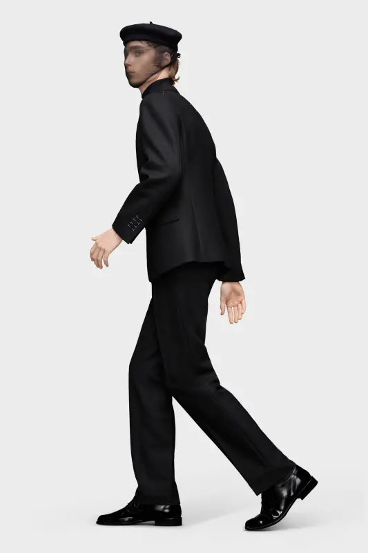 In herringbone wool, the single-breasted jacket features the Maison's work-in-progress stitching on one side of the notched collar. The numeric logo appears inside.