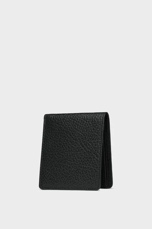 The cardholder has eight card slots and multiple sections for notes. It is crafted from embossed grainy leather with the numeric logo inside. Maison Margiela's signature, the four stitches, appear on the back; the opposite of a label.
