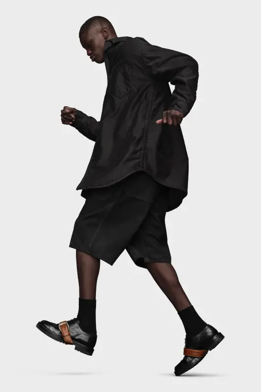 Created in satin cotton, the shirt is oversized and padded. It comes complete with buttoned placket, collar and chest patch pocket. Maison Margiela's signature, the Four stitches, appear at the back; the opposite of a label.
