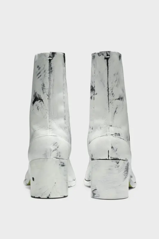 Featuring the Maison's Bianchetto treatment, which wears with age for an evolving look, these low-heeled ankle boots are designed with the Tabi split-toe, inspired by the traditional 15th century Japanese sock bearing the same name – launched for the Maison's debut collection in 1989. It captures the avant-garde and insubordinate spirit of the Maison and exists as a heritage classic, continually explored through each collection. 6cm heel.