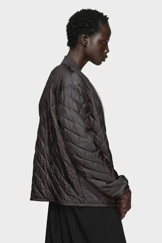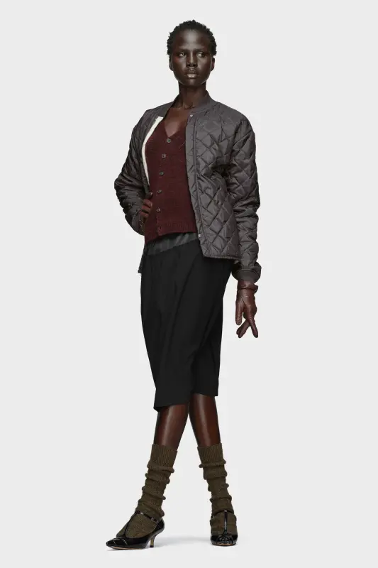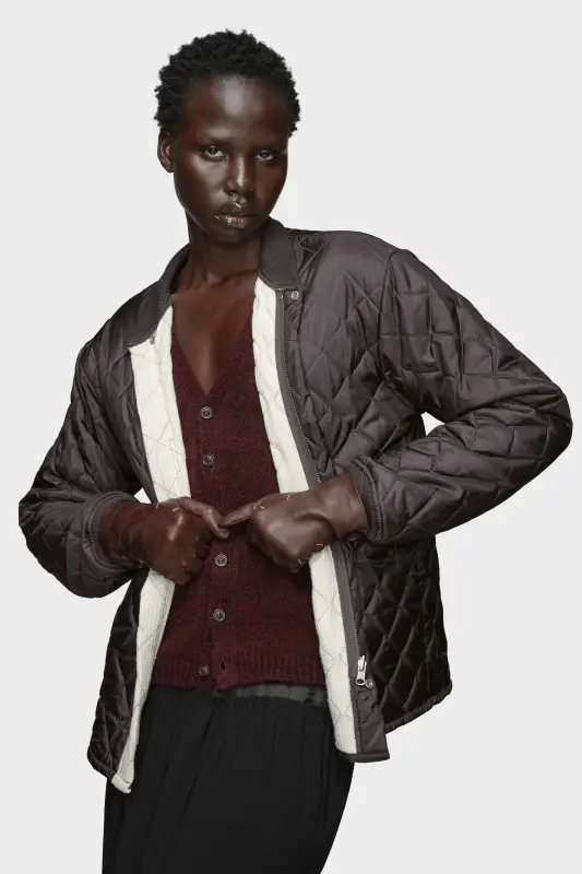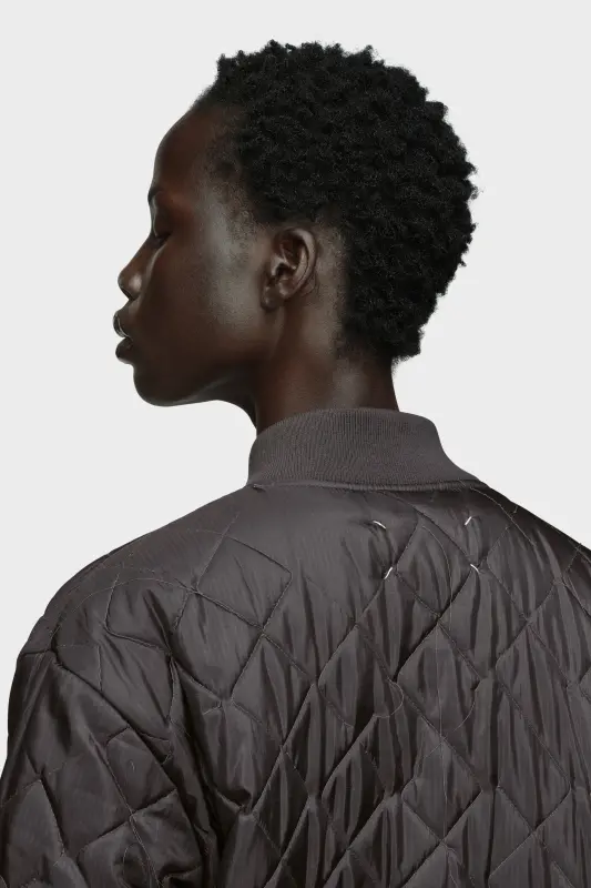 This reversible jacket uses tonal stitching and contrast ribbing to frame its boxy silhouette. The Maison’s quilting and padding technique creates structure and dimension, offering both warmth and sculptural refinement. Maison Margiela’s signature, the four stitches, appear at the back; the opposite of a label.